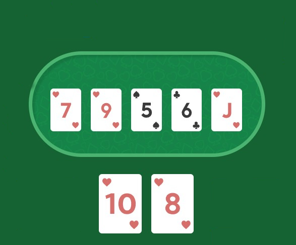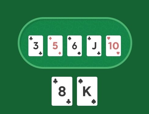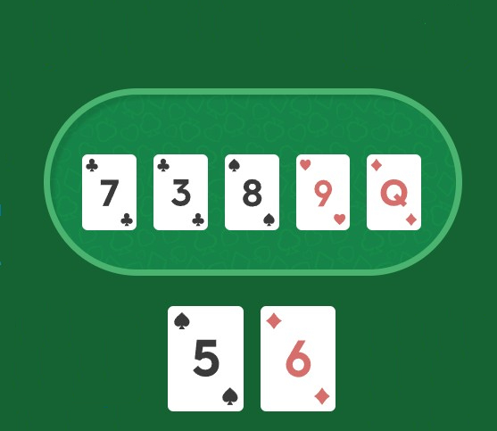 - Гатшот. Стрит, в котором не хватает одного номинала «посередине». Пример такой руки — 5689. Чтобы улучшить ее, потребуется любая семерка.