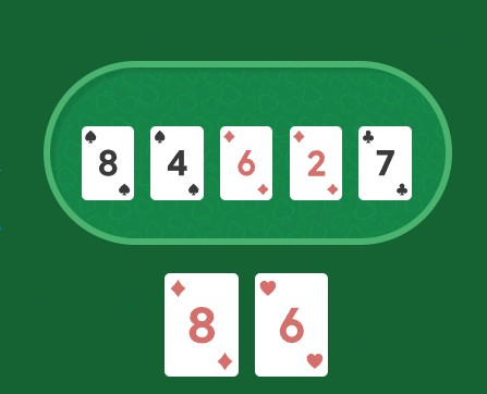 Две карты одного достоинства. Дополняются тремя самыми старшими из доступных игроку. Они привлекаются к сравнению рук, если у соперников совпали пары.