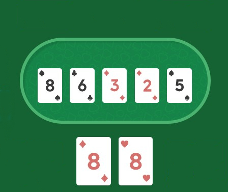 Три совпадающих по номиналам карты и две дополняющие. Есть несколько названий этой руки, которые различаются по смыслу. Общий термин для любого варианта — тройка. Сет включает в себя две карманки, а трипс — только одну.